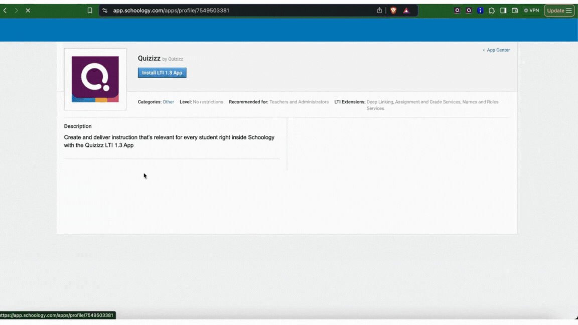 ⚠️ Important: Please install only the Wayground LTI 1.3 app from the Schoology App Center.