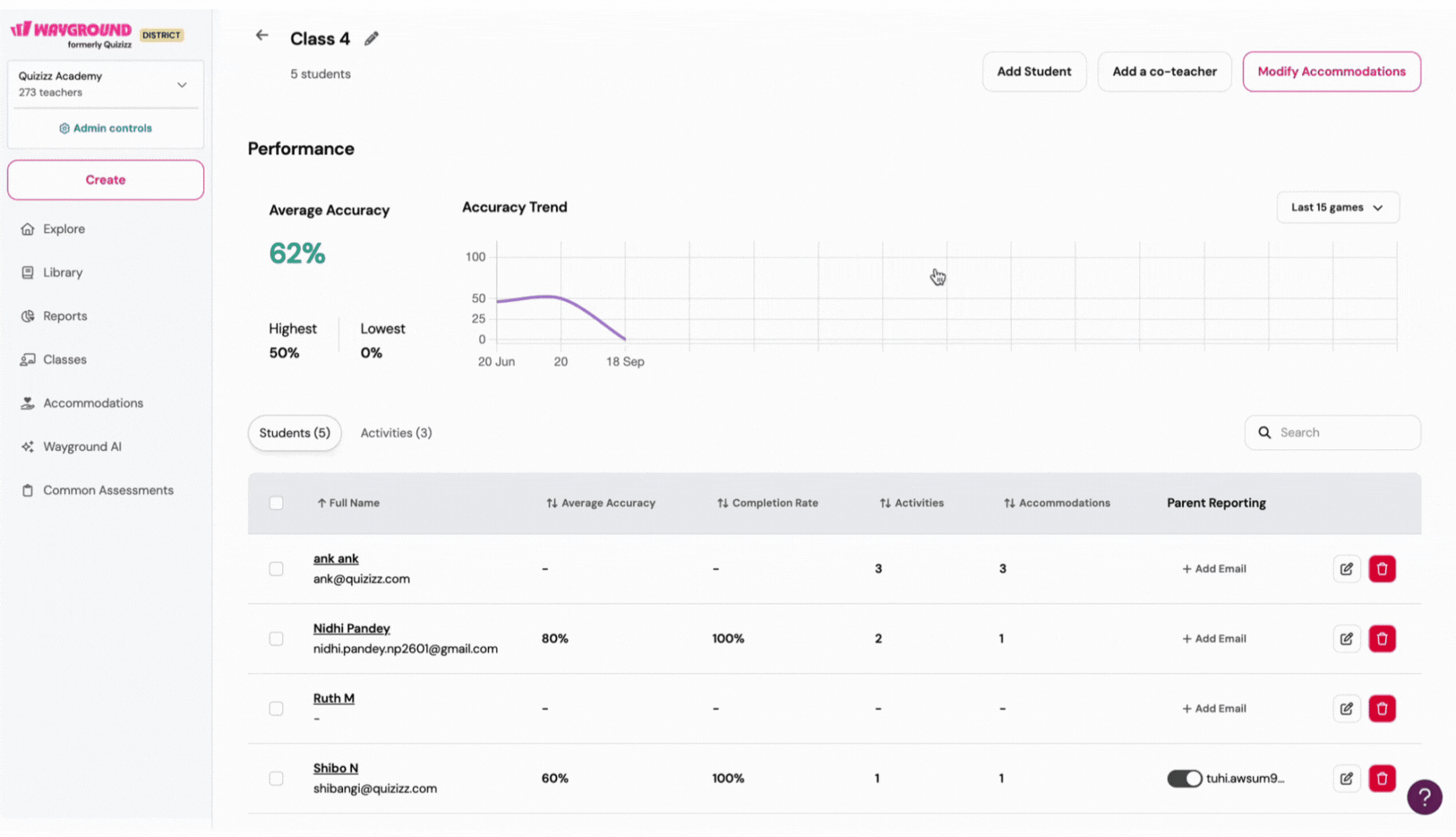 Create a Wayground Class and add/remove students