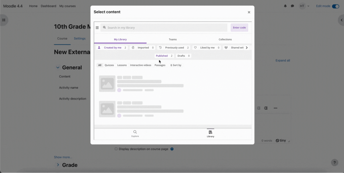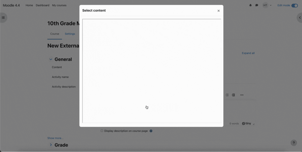 Now that the Wayground LTI tool is enabled for the required Moodle course, follow these steps to assign a Wayground resource to the course: