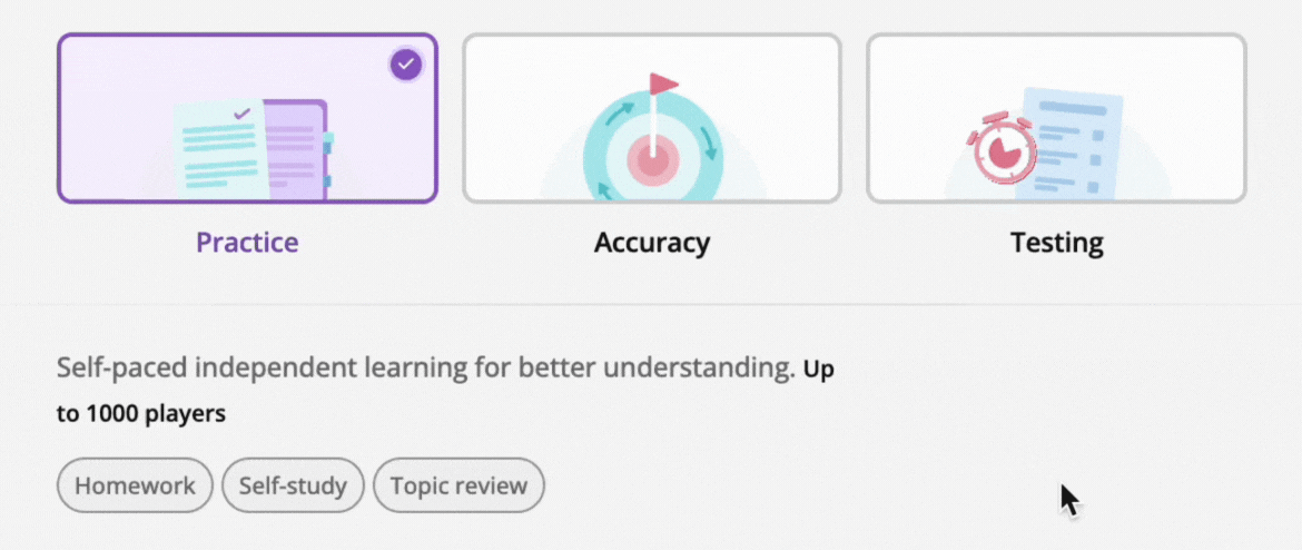To learn about modes available for live sessions, check out Live Session Modes on Wayground.