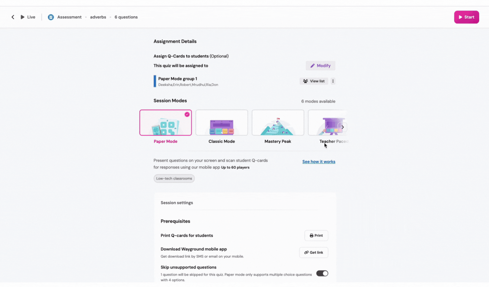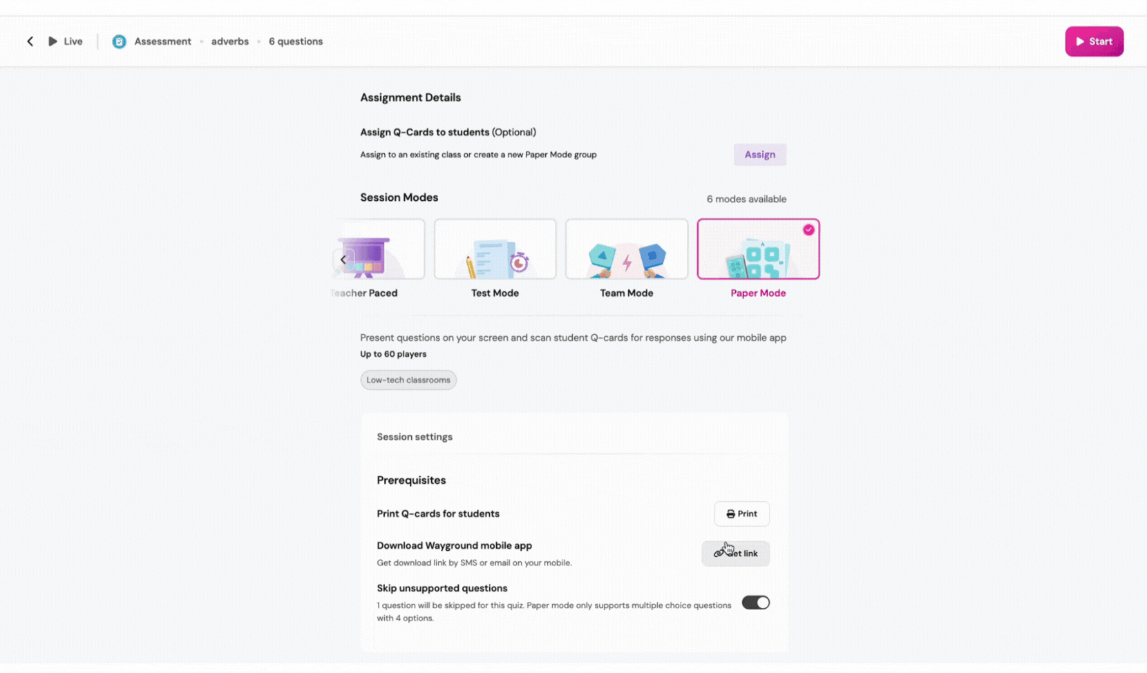 - Note: Paper mode only works for Assessments/Quizzes with MCQ questions, so if you have other question types in your Assessment/Quiz, they will not show up during a Paper Mode game