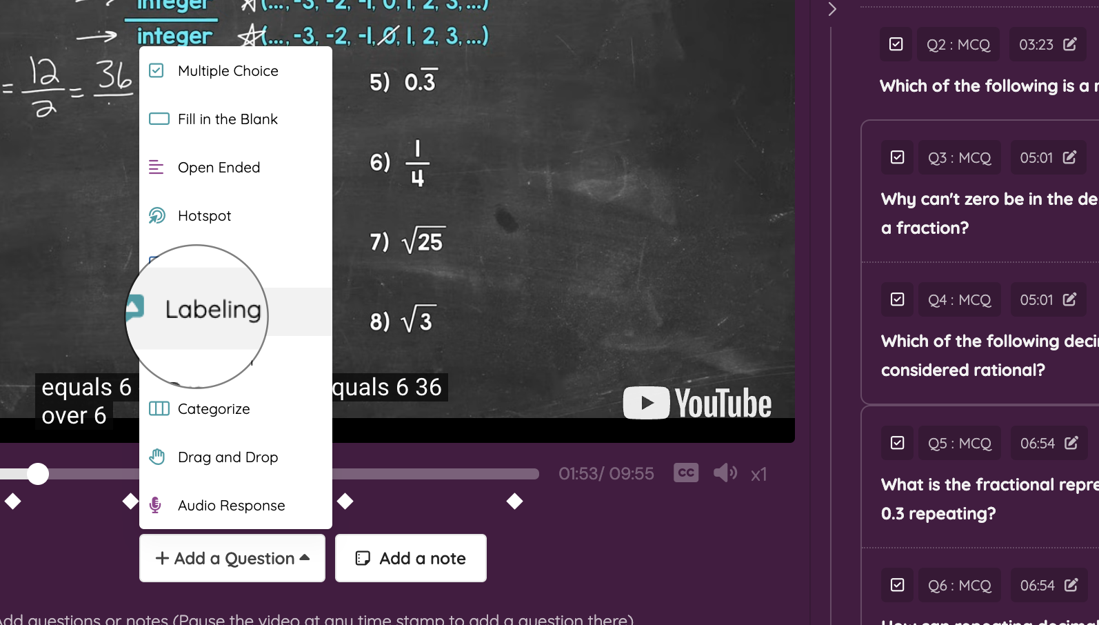 You can add up to 10 label options and mark multiple options as correct. You can also add equations to the question and its labels.