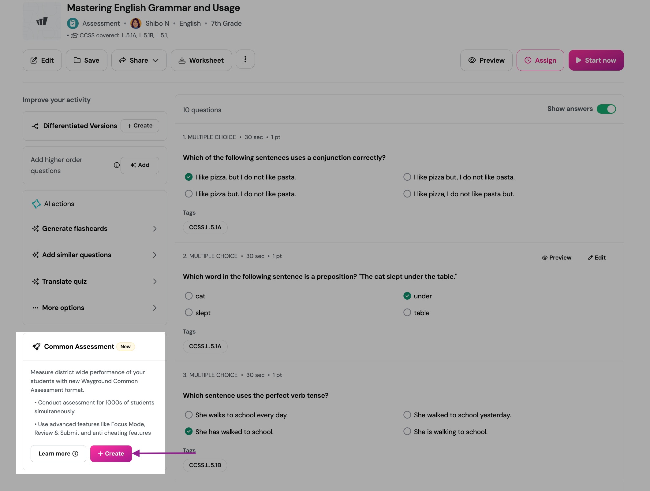 - Tag subjects and grades: Tag the assessment with the appropriate subjects and grades
