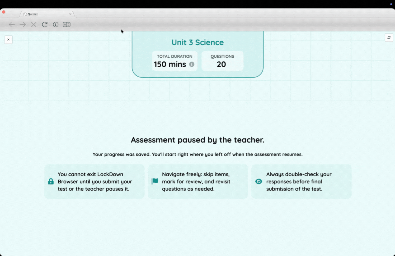 You’ll see “Waiting for your teacher to start” until the assessment begins.