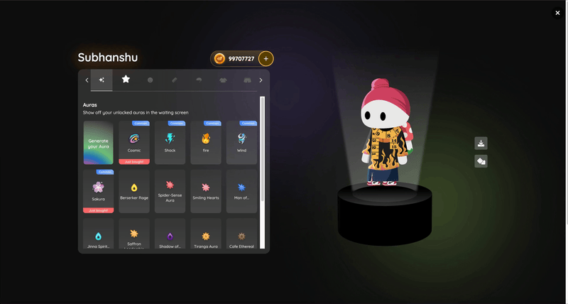 Students need to earn coins by playing on Wayground before they can buy or generate Auras